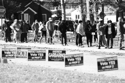 10月31日,在美國紐約州長島的一個投票站外,參加提前投票的選民排起長隊。新華社發