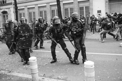 12月5日,警察在法國巴黎遊行示威活動現場警戒。新華社發