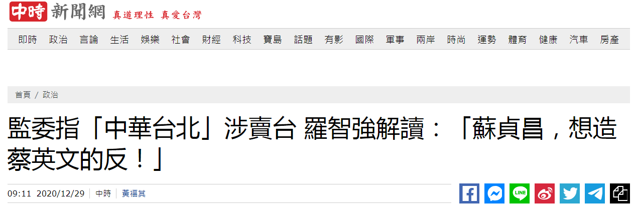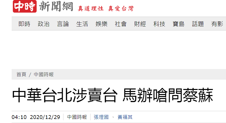 【環球網報道 記者 趙友平】台媒12月29日消息稱,台灣“監察委員”林文程昨天(28日)質疑台灣地區前領導人馬英九執政時期,決定以“中華台北”名義和觀察員身份參與世界衞生大會(WHA),涉及賣台,台灣行政機構負責人蘇貞昌馬上指示要追查真相。馬英九辦公室28日晚些時候對此回應稱,現在民進黨執政還在繼續沿用“中華台北”這一稱呼,請即刻約談調查蔡英文。國民黨籍台北市議員羅智強29日還調侃稱,這是“蘇貞昌想造蔡英文的反。”