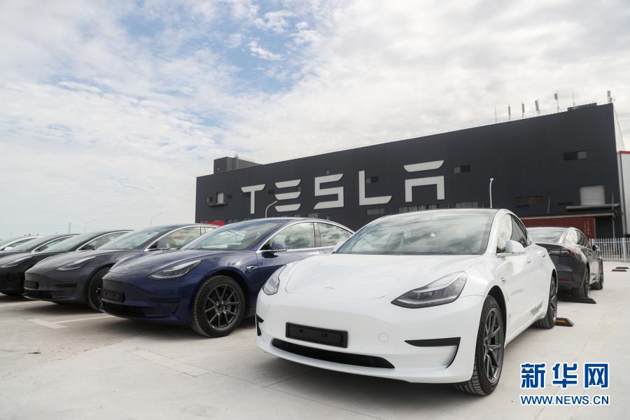 10月26日拍攝的特斯拉上海超級工廠內的Model 3汽車。新華社記者 丁汀 攝