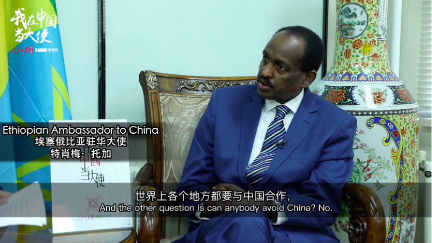 埃塞俄比亞駐華大使特肖梅·託加表示,世界上沒有國家能不和中國打交道。