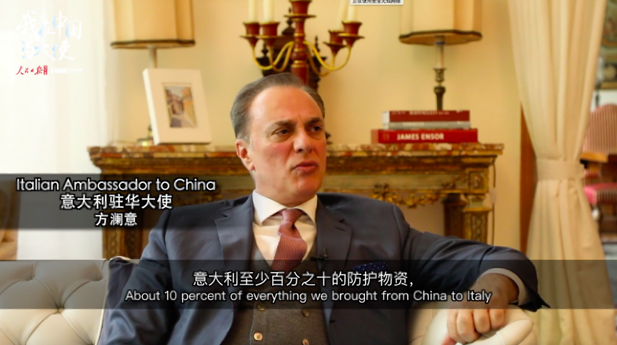 意大利駐華大使方瀾意稱,意大利至少百分之十的防護物資,都是來自中國政府、學校、友好協會的捐助。