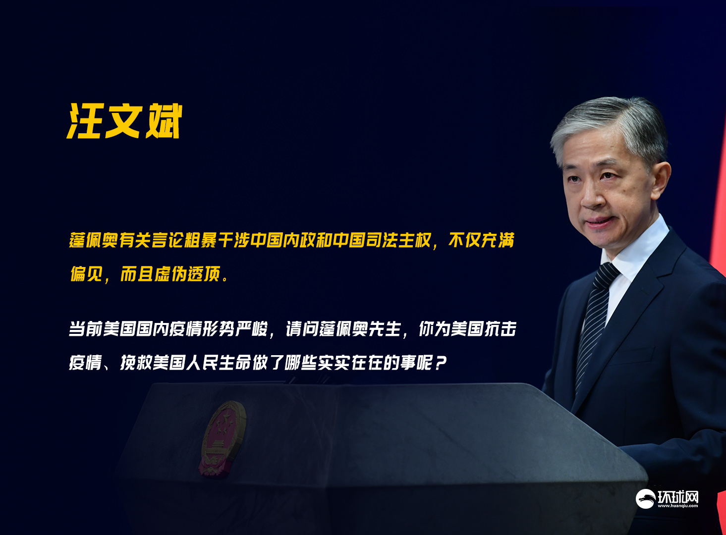 蓬佩奧聲稱中方“瀆職”使疫情演變成全球大流行,汪文斌駁斥:有關言論充滿偏見,虛偽透頂!