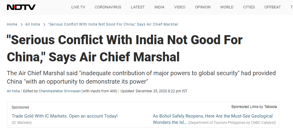 倒打一耙?印度空軍參謀長聲稱與印發生嚴重衝突,對中國沒有好處
