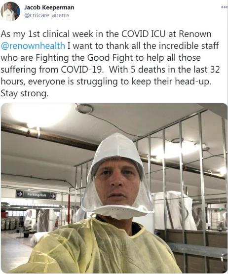 12月初,內華達州新冠急救醫生雅各布•基伯曼的一張自拍照,在美國引發巨大爭議。