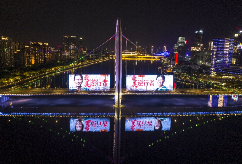 2月17日,廣州全場為“最美逆行者”亮燈。 南都記者 陳輝 攝