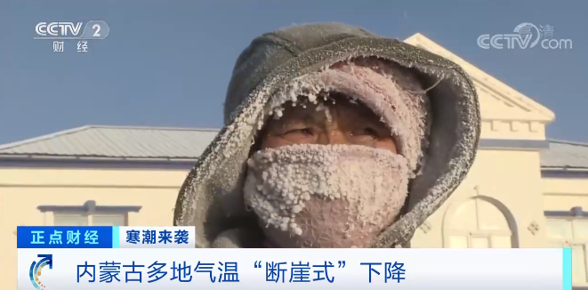 在內蒙古東部地區,額爾古納市莫爾道嘎鎮氣温下降至-41℃,路面鋪滿厚厚的積雪,行人身上雖然穿着厚重的冬裝,但呼出的氣瞬間在衣服和臉上都結了冰。