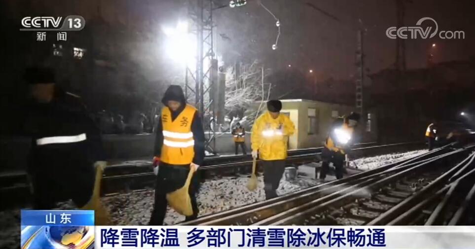 12月28日夜間,山東多地出現降雪,為保障列車運行暢通和旅客順利出行,濟南火車站200餘名除雪隊員對轄區內246付道岔進行不間斷噴防凍液、清掃積雪等工作。同時,火車站工作人員在進站口鋪設防滑墊,增設防滑警示標識,對廣場、站台進行除雪,確保旅客出行安全。
