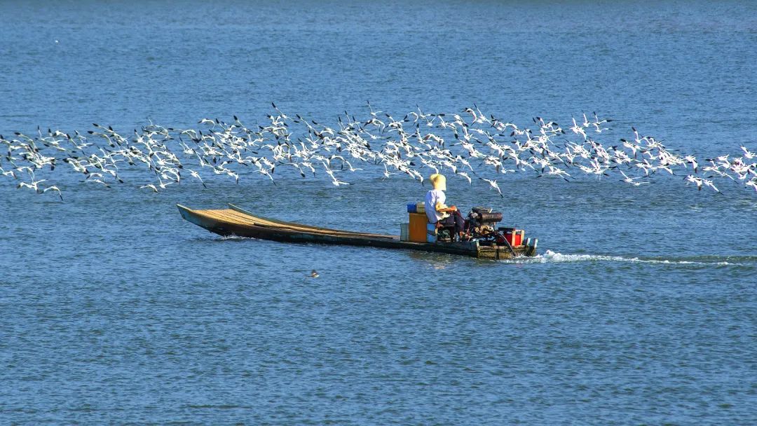 與北方的冰上捕撈不同,南方的水面沒有冰雪覆蓋,漁民們省去了鑿冰的環節,可以直接撒網捕撈。