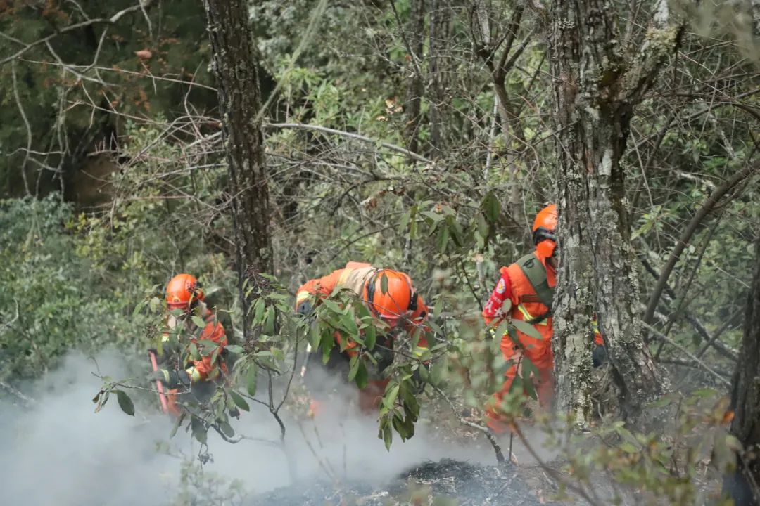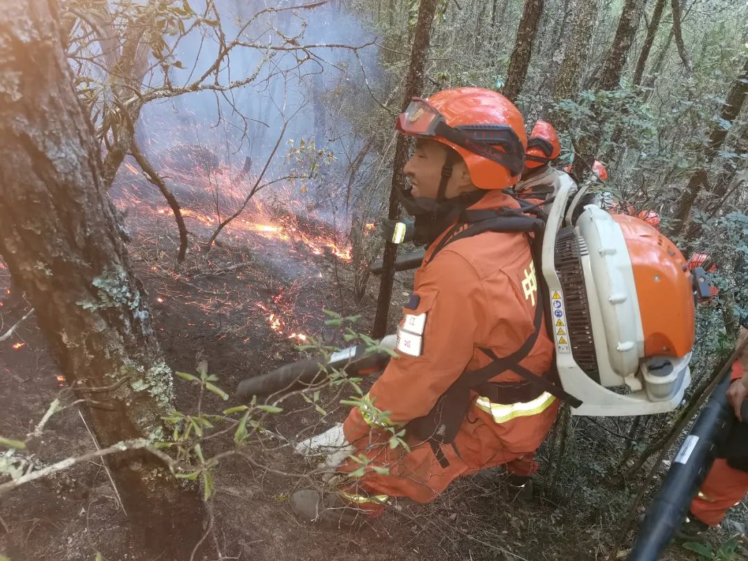 雲南省森林消防總隊先後投入迪慶大隊、麗江支隊、大理支隊共364名指戰員進行撲救,齊興彬總隊長率前指一線指揮。麗江市森林消防支隊159名指戰員正全力撲打火場西北線,大理州森林消防支隊138名指戰員正全力阻截東北、北線明火,迪慶州森林消防大隊60名指戰員跟進處理北線和東線零散火點。