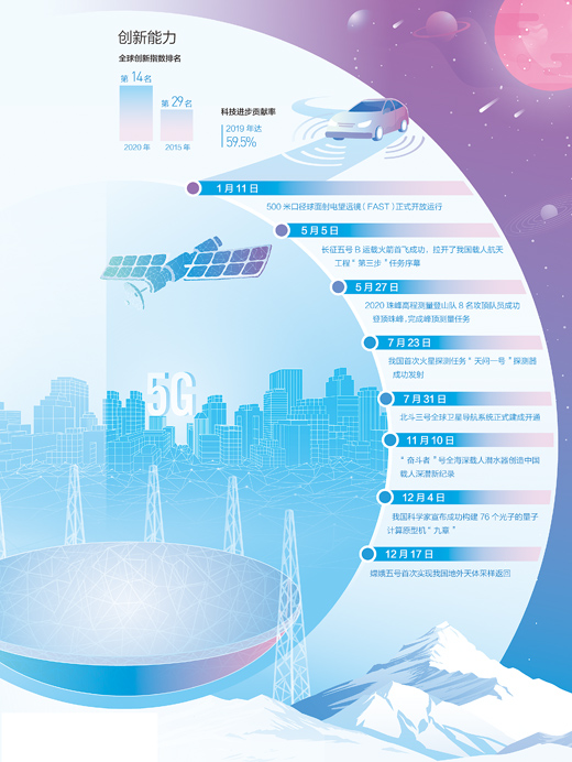 2020年,我們共同見證了這樣一串數字——“天問一號”探測器成功發射,已累計飛行約3.7億公里;在38萬公里之外,嫦娥五號探測器實現月球軌道交會對接;“奮鬥者”號勇闖馬裏亞納海溝,創造了10909米的中國載人深潛新紀錄……一項項成就,標註着我國科技發展的高度。一項項創新成果和技術突破,既離不開基礎研究的持續推進,也有賴於對創新土壤的厚培。