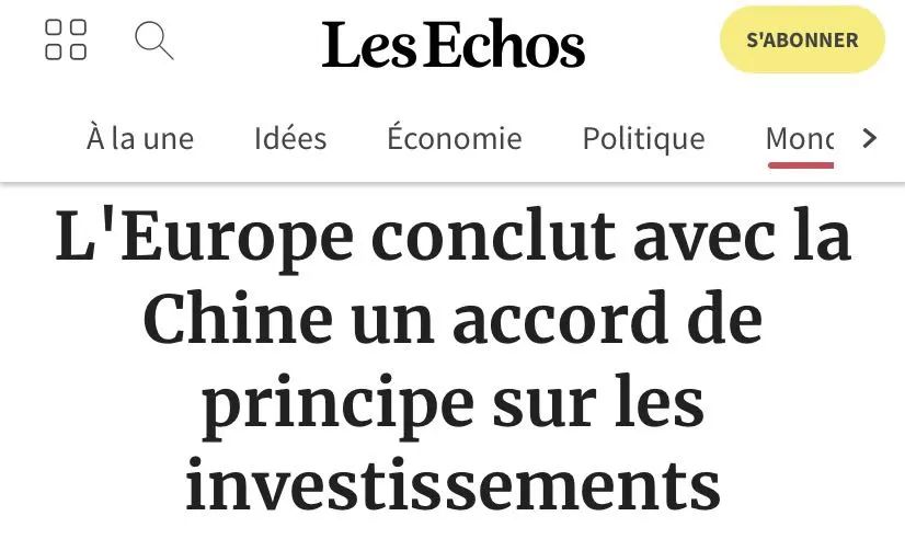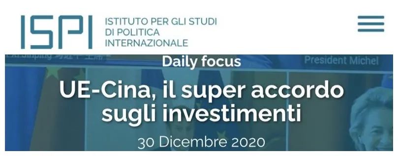 歐洲多國的媒體也第一時間關注中歐領導人共同宣佈如期完成中歐投資協定談判。