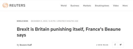 據此前報道,12月24日,歐盟與英國談判代表就包括貿易在內的英歐未來關係協議細節達成一致,為英國按照原計劃在2020年結束“脱歐”過渡期掃清障礙。至此,綿延4年的“脱歐”進程告一段落。