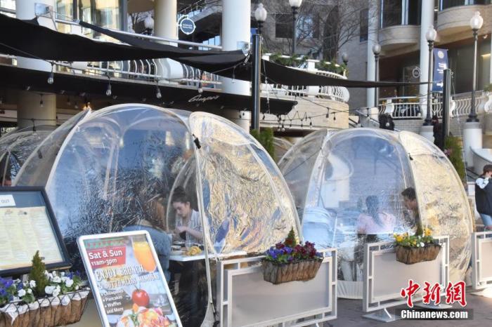 當地時間12月29日,美國首都華盛頓民眾在室外“泡泡”餐廳用餐。中新社記者 沙晗汀 攝