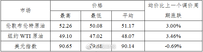 調價週期內,多國開始接種新冠肺炎病毒疫苗,美國批准通過新一輪經濟刺激政策、美國原油庫存下降,均給油價帶來支撐。美國能源情報署數據顯示,截至12月25日,美國原油庫存減少了610萬桶至4.935億桶。但英國發現新冠肺炎變異病毒,傳播速度高於原毒株,確診病例數激增,此後多國發現該型輸入病例。為遏制病毒傳播,多國採取封鎖政策,市場對原油需求復甦前景的憂慮再次升温,抑制油價漲幅。平均來看,本調價週期倫敦布倫特、紐約WTI原油期貨價格分別為每桶51.17美元、48.07美元,分別比上一調價週期上漲3%、3.46%。