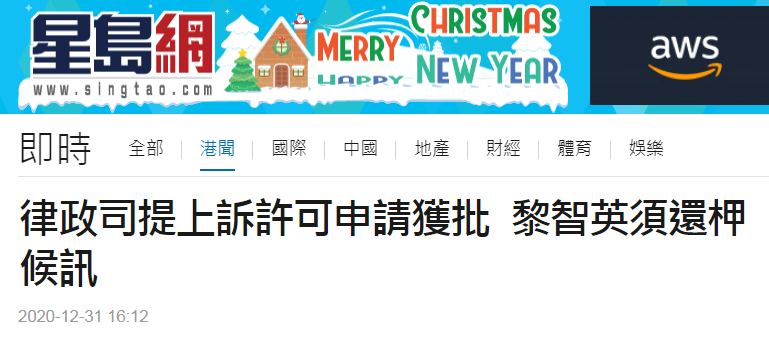本月23日,律政司曾表明,會根據《香港終審法院條例》第35條,就原訟庭批准黎智英保釋的決定向終審法院提出上訴。“東網”在隨後的報道中稱,律政司在24日向終審法院提交文件要求緊急處理,提議即使未來數天的公眾假期也可開庭,同時要求在等候聆訊期間,再度羈押黎智英。