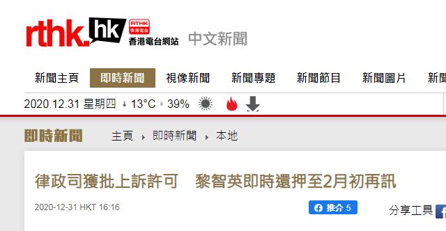 黎智英又進去了!港媒:香港終審法院批准律政司上訴許可,黎須即時還押至2月初再審