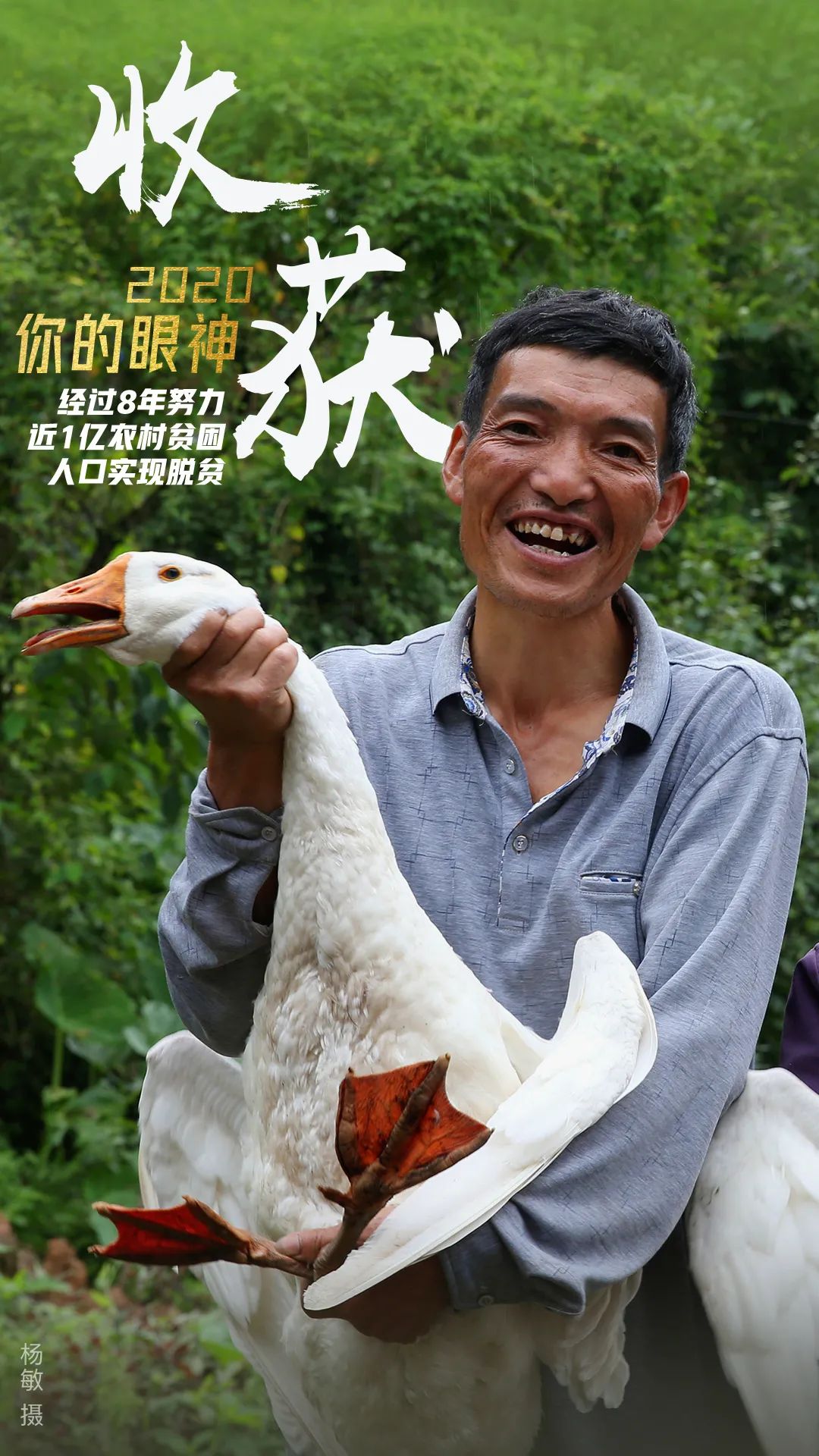 7月21日,重慶市黔江區中塘鎮雙石村村民楊奉成展示餵養的白鵝。