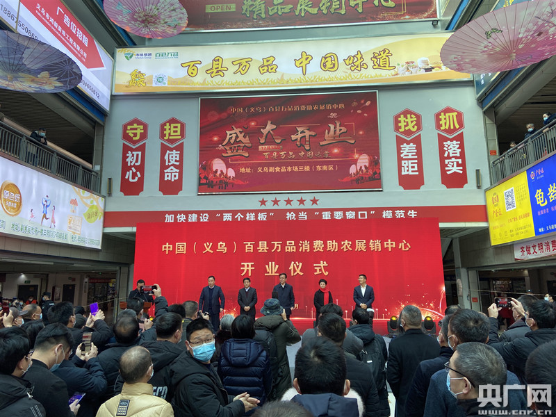 央廣網義烏12月31日消息(記者張國亮 通訊員陳華棟)作為義烏市東西部扶貧協作等工作的重要項目,中國(義烏)“百縣萬品”消費助農展銷中心12月30日在義烏副食品中心盛大啓幕。同日,“百縣萬品”微商城正式上線運營。計劃至2021年,“百縣萬品”消費助農規模將從“千萬元級”提升為“億元級”,每年至少帶動1000户脱貧人員穩定增收1000萬元。