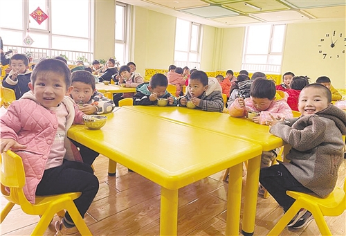 和政縣嘉庚實驗幼兒園的孩子們正在吃午飯。 經濟日報-中國經濟網記者 薛志偉攝