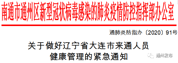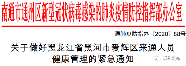 江蘇南通市通州區疫情防控指揮部發布兩條緊急通知!