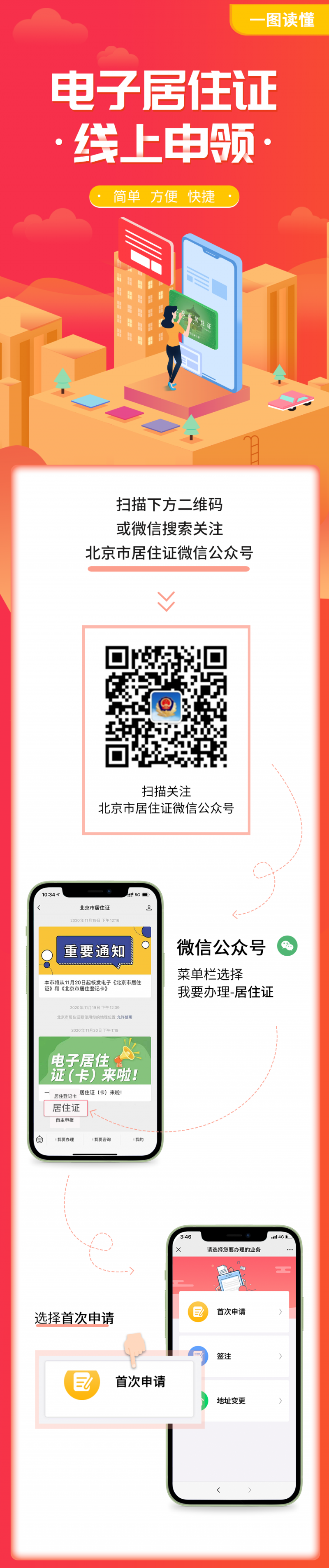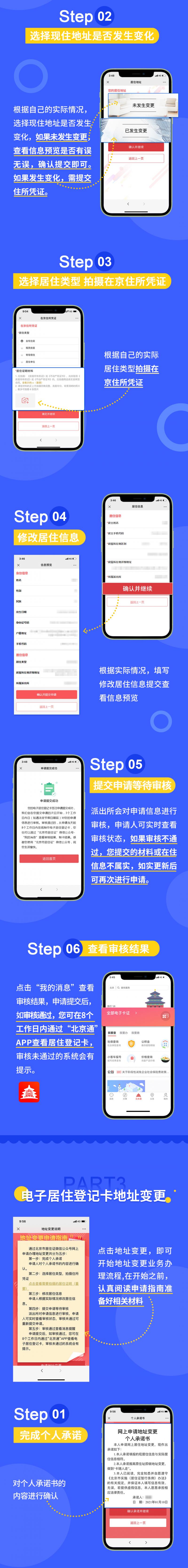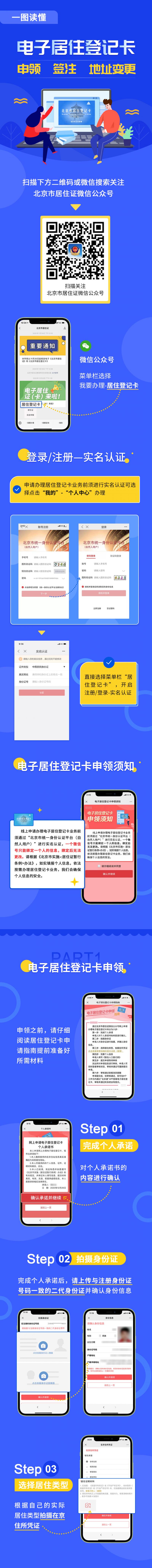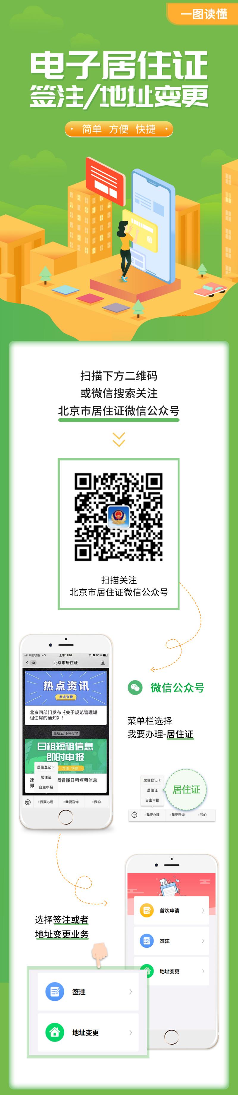 六是為方便來京人員瞭解線上辦理電子居住證(卡)業務流程,市公安局已通過“北京市居住證微信公眾號”推送了“一圖讀懂電子居住證線上申領”的推文。同時,來京人員如需進一步諮詢辦理電子居住證(卡)相關政策,可以撥打居住地户籍派出所對外公開服務電話。