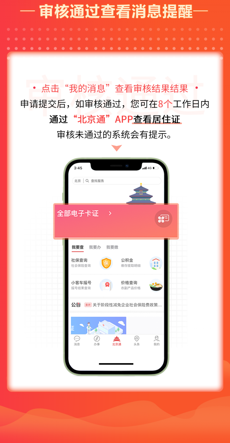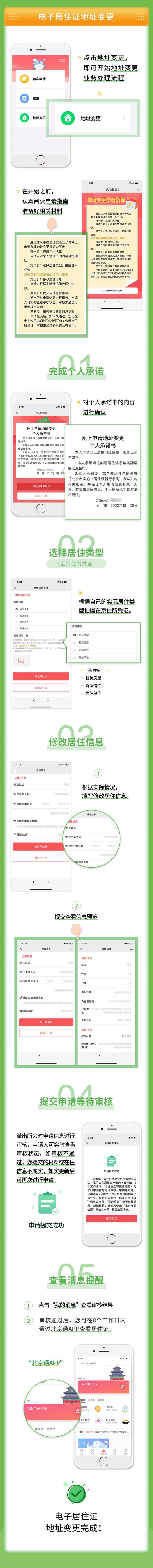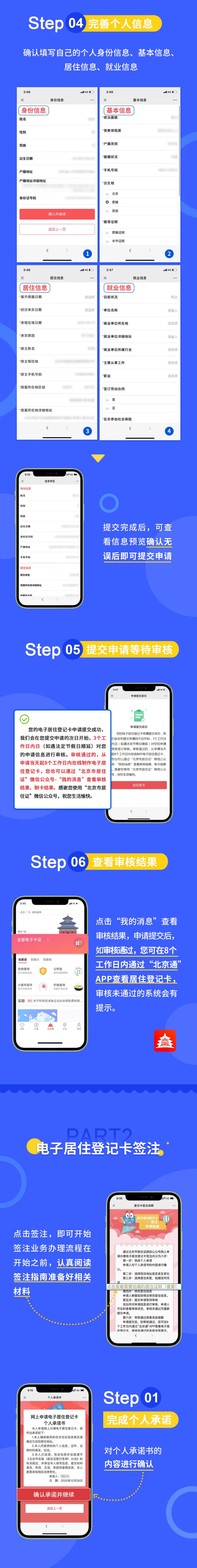 辦理方法。來京人員可以任意選擇其中一個平台進行登記註冊、填報個人信息,根據本人實際情況選擇擬辦理的業務類型、上傳相關材料並點擊確認提交。經居住地公安機關線下核實,確認情況屬實後,於8個工作日內在線上為其核發電子居住證(卡)。同時,為方便不會上網、不會使用智能手機人員辦理業務,公安機關還將保留部分線下居住證(卡)辦理窗口,提供有效服務。
