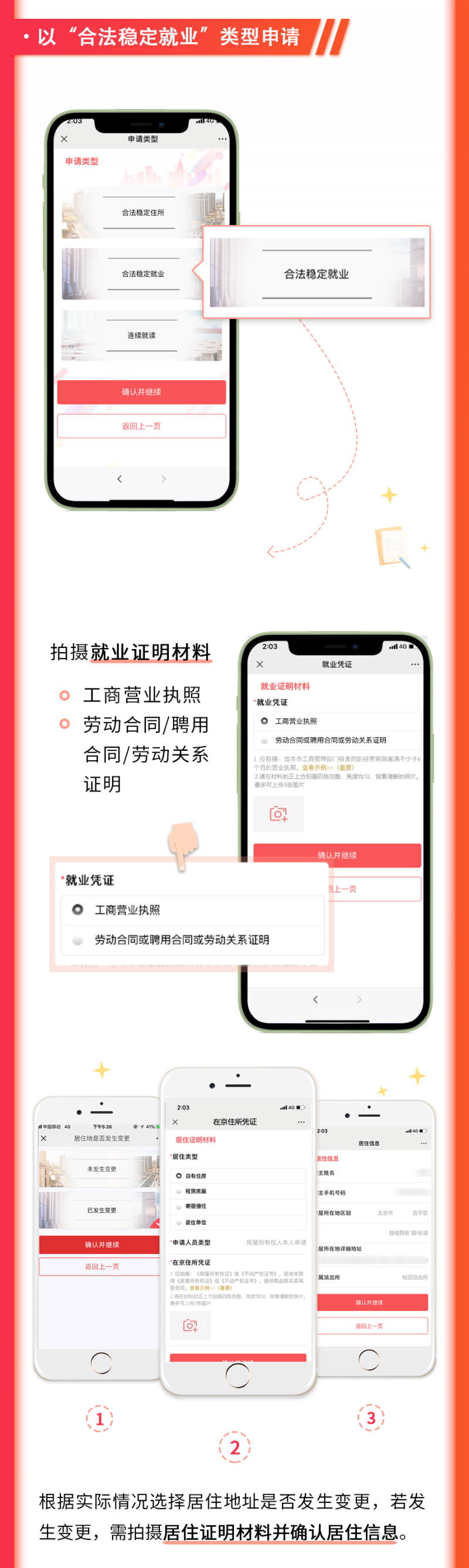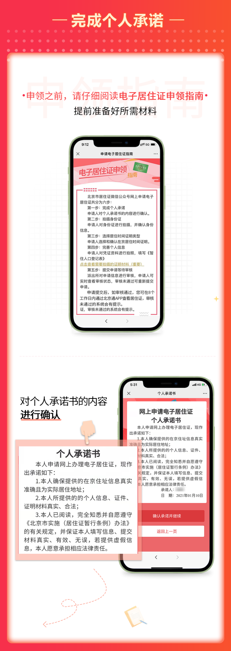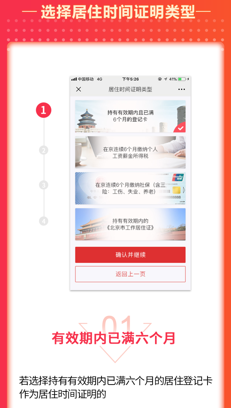 辦理方法。來京人員可以任意選擇其中一個平台進行登記註冊、填報個人信息,根據本人實際情況選擇擬辦理的業務類型、上傳相關材料並點擊確認提交。經居住地公安機關線下核實,確認情況屬實後,於8個工作日內在線上為其核發電子居住證(卡)。同時,為方便不會上網、不會使用智能手機人員辦理業務,公安機關還將保留部分線下居住證(卡)辦理窗口,提供有效服務。