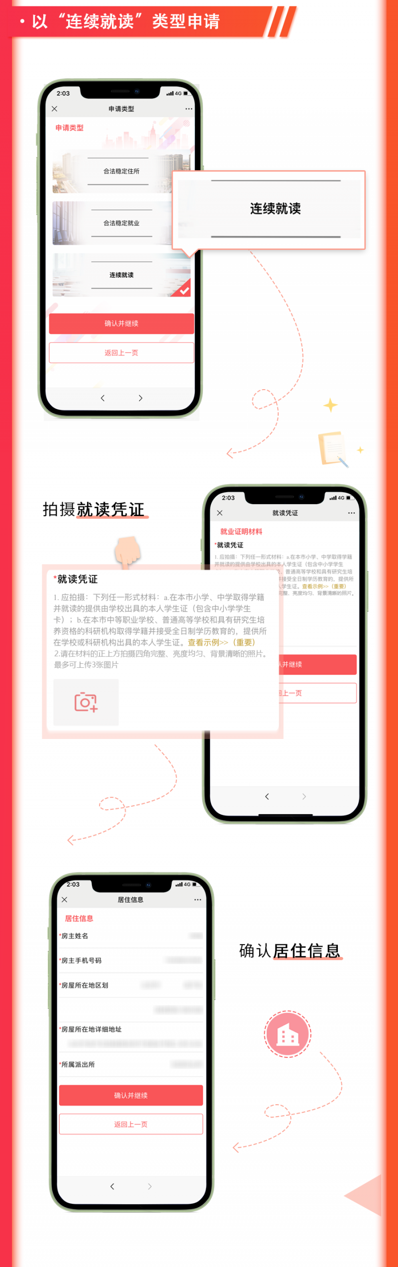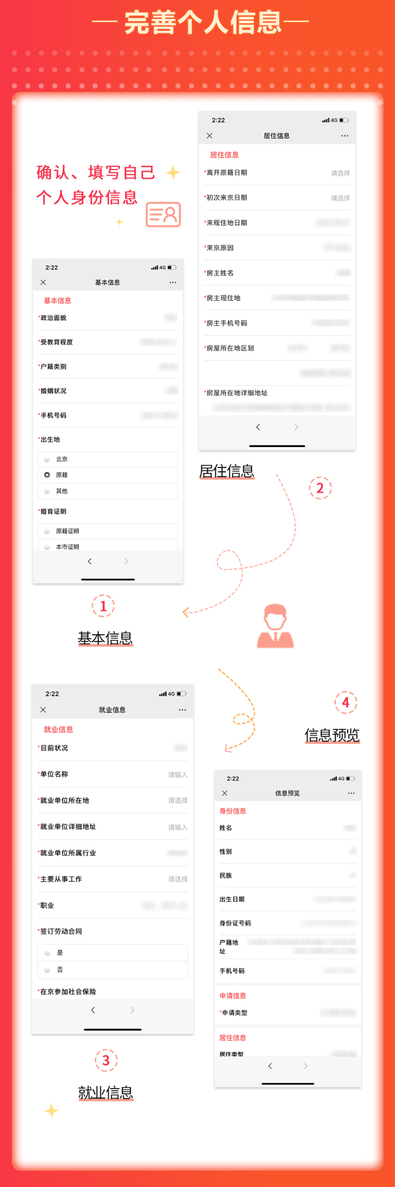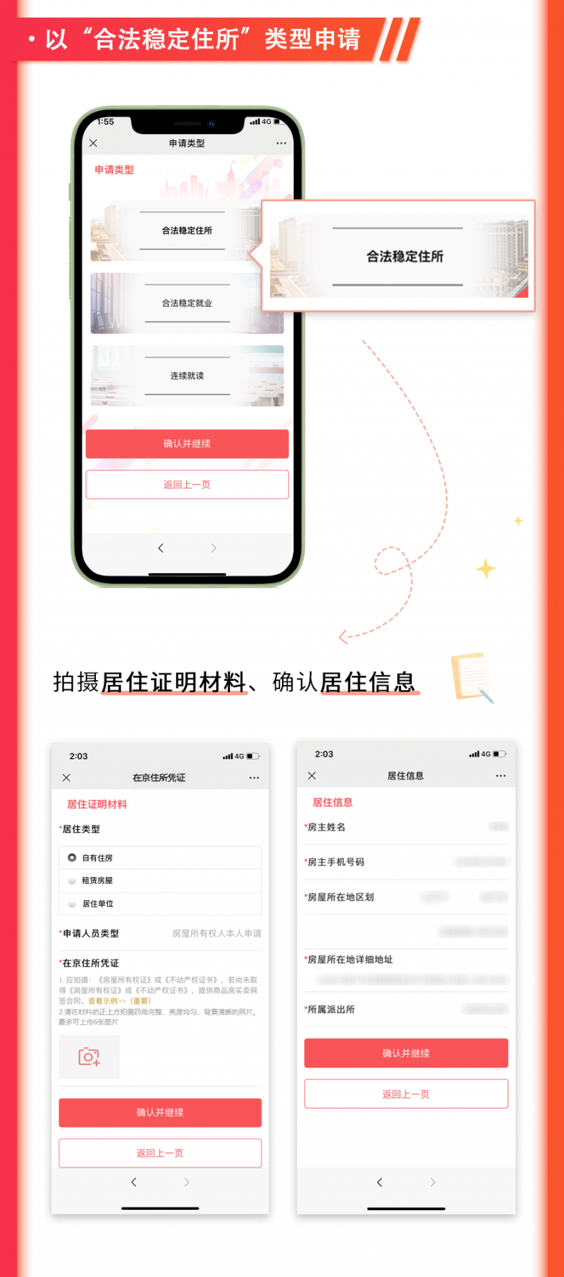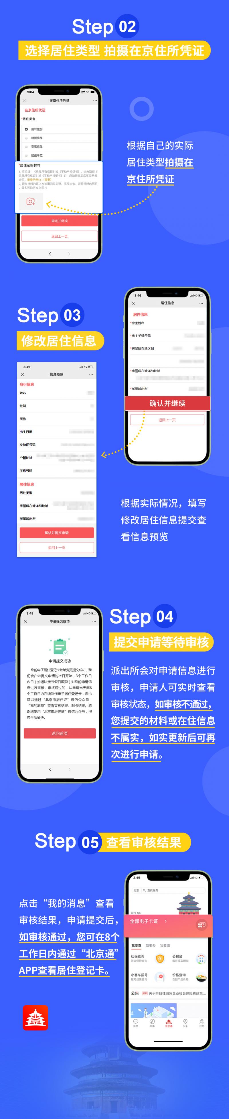 四是全面推行受理核發電子居住證(卡)後,本市各户籍派出所針對申請辦理電子居住證(卡)相關業務的來京人員,將組織社區民警和流管員開展調查回訪工作,對所提供相關信息的真實性、準確性進行入户核實,請廣大來京人員予以支持配合。