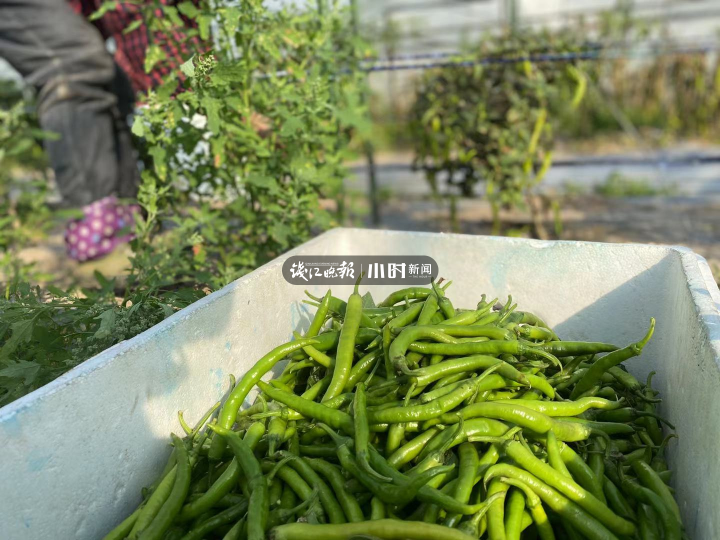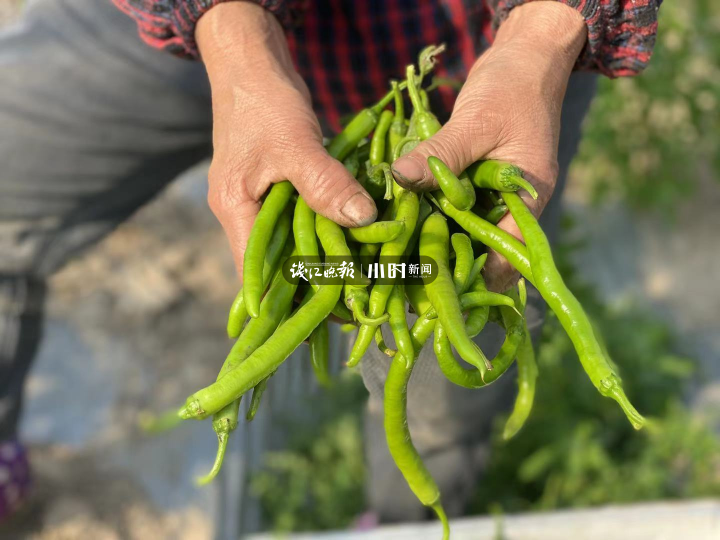 不太辣的小尖椒,可以搭配炒雞蛋、肉片,大棚裏的尖椒,已經是今年最後一茬果。