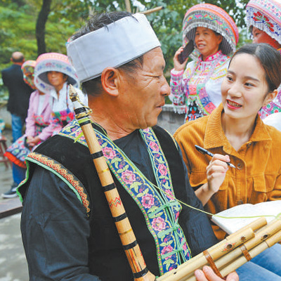 普法志願者在重慶萬盛經開區田壩村為苗族羣眾講解法律知識。