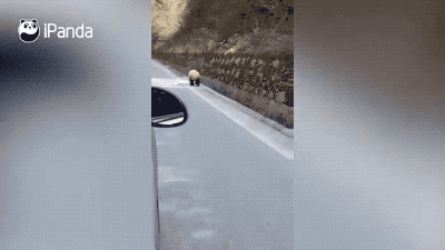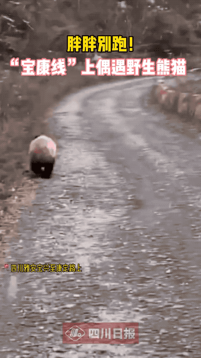 2020年12月29日,網友行駛在從寶興至康定的公路途中,偶遇一隻大熊貓,正扭着屁股向前“競走”。