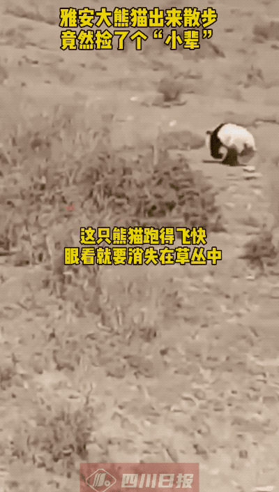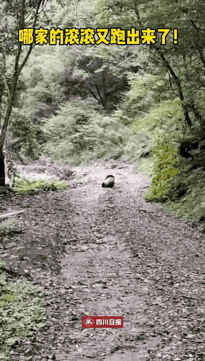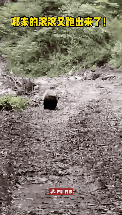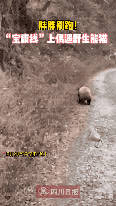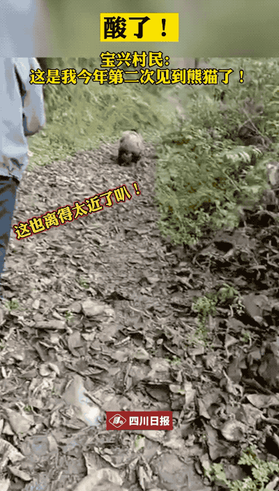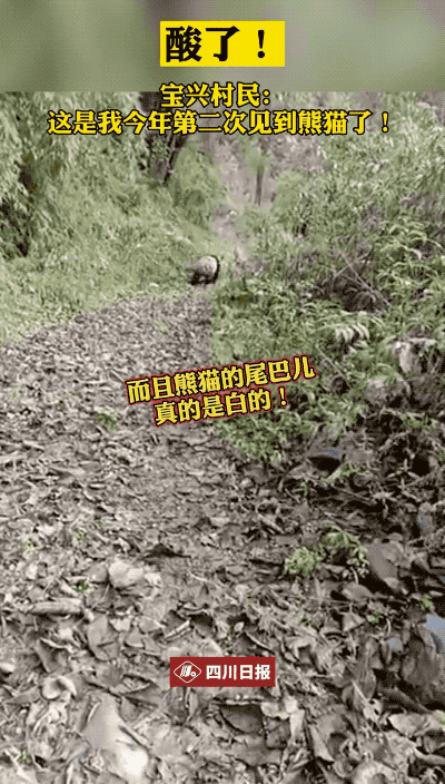 2020年10月18日,四川雅安寶興中崗村十五組村民羅成在回家途中,拍攝到了野生大熊貓出沒。在羅成拍攝的視頻中,大熊貓順着山路朝叢林跑去,屁股一扭一扭的,漸漸消失在樹林裏。