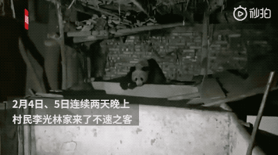 2020年2月4日,一隻野生大熊貓連續兩晚“住在”了村民李光林家的豬圈中,直到凌晨時分才離去。