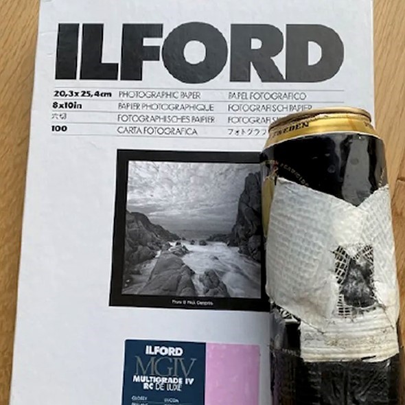裏面放上伊爾福照相紙,是印照片用的。連膠捲就免了。曝光就是曝光嗎,無非正像負像。照相紙便宜啊