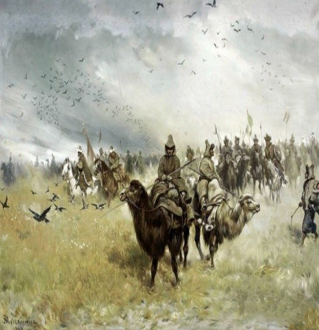 也先比帖木兒魄力大,是真敢稱可汗的梟雄。他自稱可汗後,覺得知院阿剌不夠忠心,就幹掉了阿剌的兩個兒子,結果他在打獵時被兵力是自己十倍的阿剌堵門,在跑路途中被仇人殺死。問題來了,他的部隊都跑到那裏去了?也先的部隊一部分可能還沒有被“激活”,處於遊牧民狀態,草原民族兵民合一除了貴族身邊的衞隊,大部分士兵平常就是牧民,距離他有相當的距離。這部分人追隨他的長子博羅納哈勒,形成了著名的杜爾伯特部。另一部分數萬人的隊伍就在寶貝兒子阿失帖木兒手裏,他們1452年年就跑到新疆、中亞進行擴張活動。阿失帖木兒是也先認定的太師人選(阿剌就是想要太師這一職位被也先憎恨),戰力相當強悍,在1452年他和老爹一樣擊敗了東察合台汗國,把軍隊駐紮在楚河一帶。老爹被殺時,他鞭長莫及,就只好把悲痛化作搶劫的動力,在中亞大發利市。