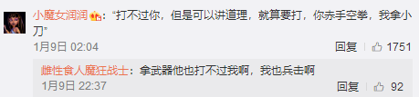 “雌性食人魔狂戰士”是切爾諾貝利巨怪的微博id,翻開她的微博,還能看到這樣一則令人無語的新聞。
