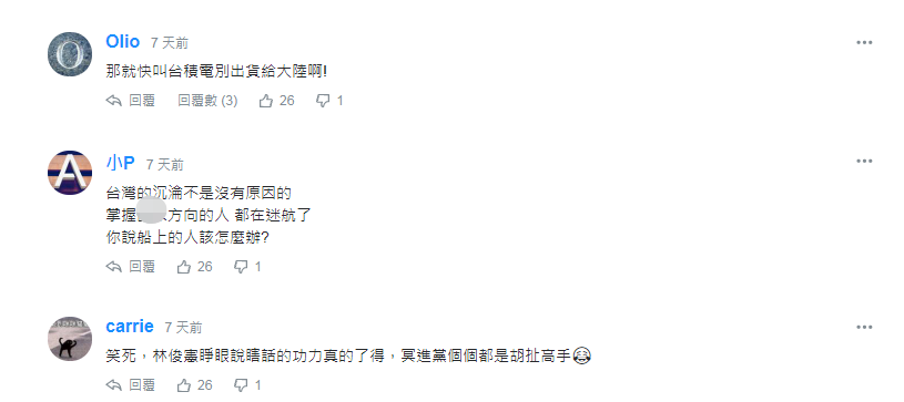 當然,台灣地區也有頭腦清醒的網友就質疑:那就不要將貨賣給大陸呀,對岸飛彈對我們,經濟又要靠我們,我們還賣東西“資敵”?