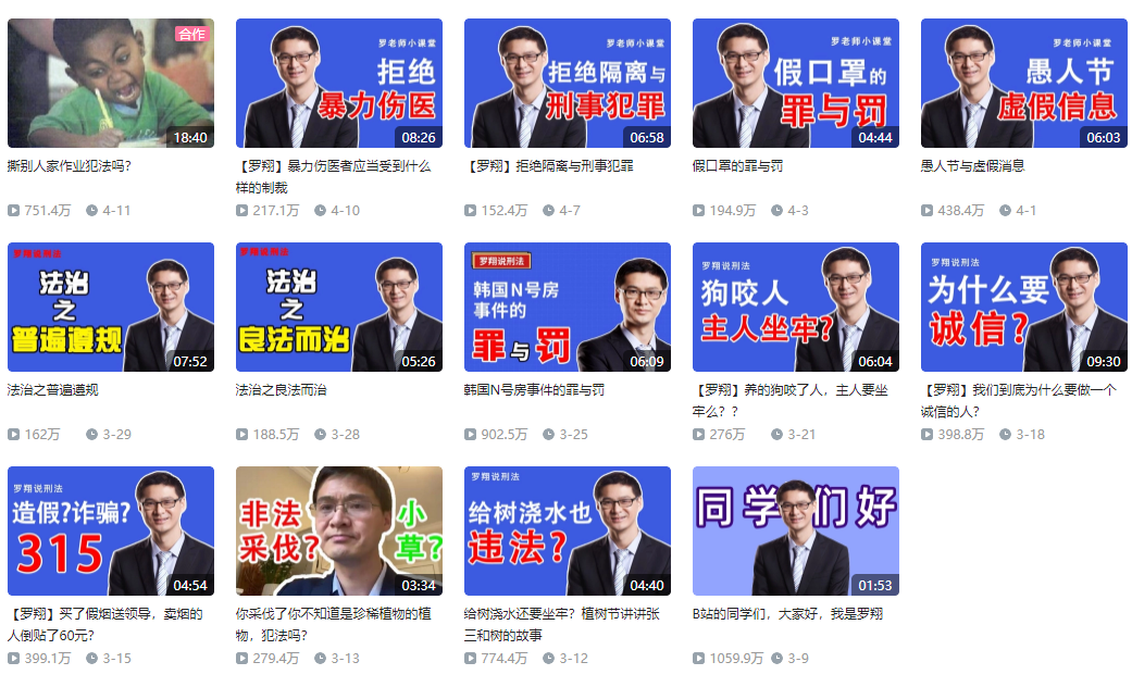 但羅翔的視頻內容脱離了説教式的科普,打破了人們對刑法的刻板印象。
