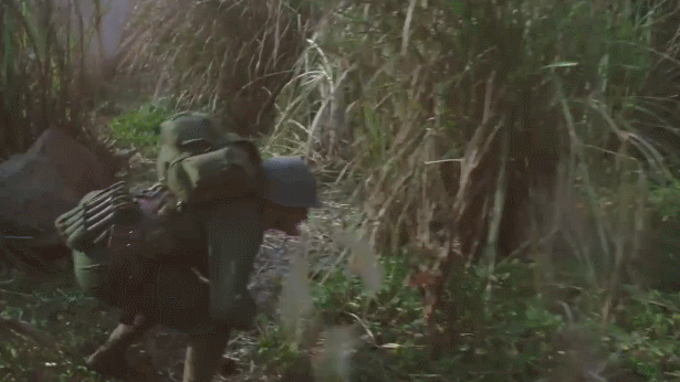 越軍的下一輪攻擊隨時可能到來,楊啓良背起報話機,手中握着步槍,隻身繼續戰鬥。楊啓良把陣地上的彈藥收攏起來,越軍摸上來就沒了命的往下丟手榴彈,同時在報話機裏向指導員保證:“請領導放心,人在陣地在,只要我楊啓良有一口氣在,敵人就不能前進一步。”