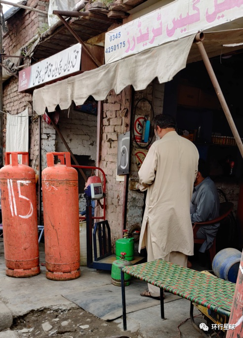 途中,車在一個類似車庫的鐵皮棚前停下,司機掀開坐墊,從下面拔出一個小煤氣罐,放在靠路邊的秤上,車庫裏的人提起它去充氣,完後又稱了稱,司機付了錢,把罐塞進坐墊下,接上氣閥,繼續上路。