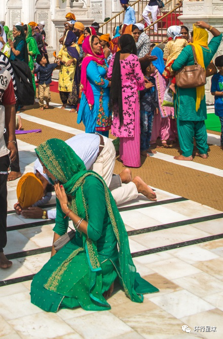 著名的金廟是錫克教最重要的**“謁師所”**。入金廟的隊伍長長的分為二隊,短的是婦女專隊,另一隊裏也有少數隨家庭一起出行的婦女。義工們把擁擠的隊伍一段段分開,以免發生踩踏事件。
