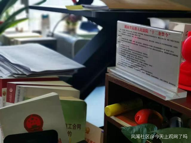 周春梅的辦公桌上立着醒目的《湖南省高級人民法院“十二條禁令”》。