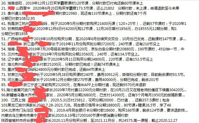 此外,這126人分期貸用户中,不少家長來自經濟並不發達中西部小城市。而元旦時張凱磊在公開信中説,學霸君一對一的學員有5萬多人,分期學員中來自小城市的比例可想而知。