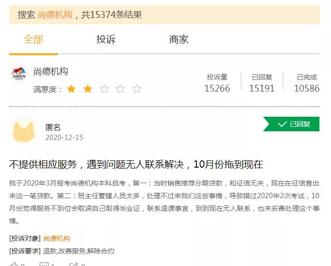 在新浪旗下消費者投訴平台黑貓投訴,涉及教育類的投訴多達5萬多條,其中不少是關於分期貸。
