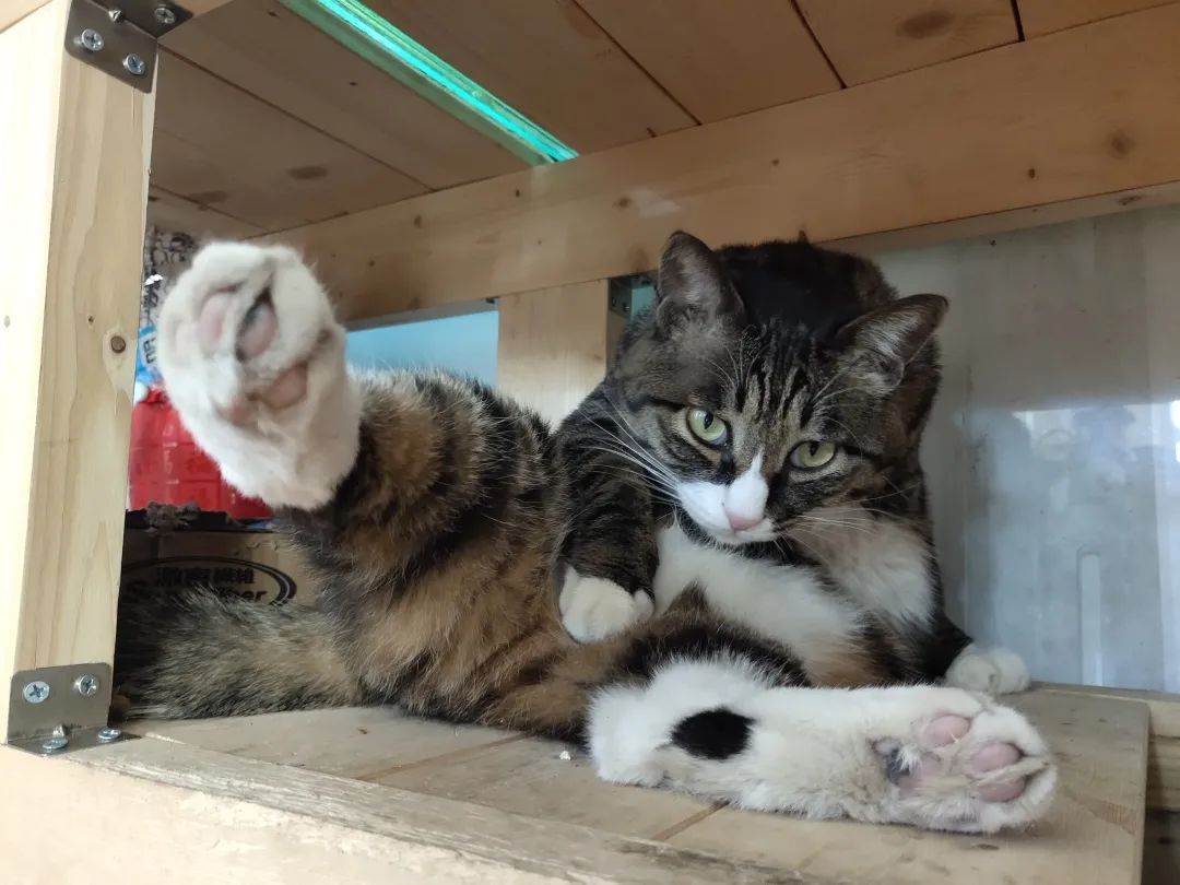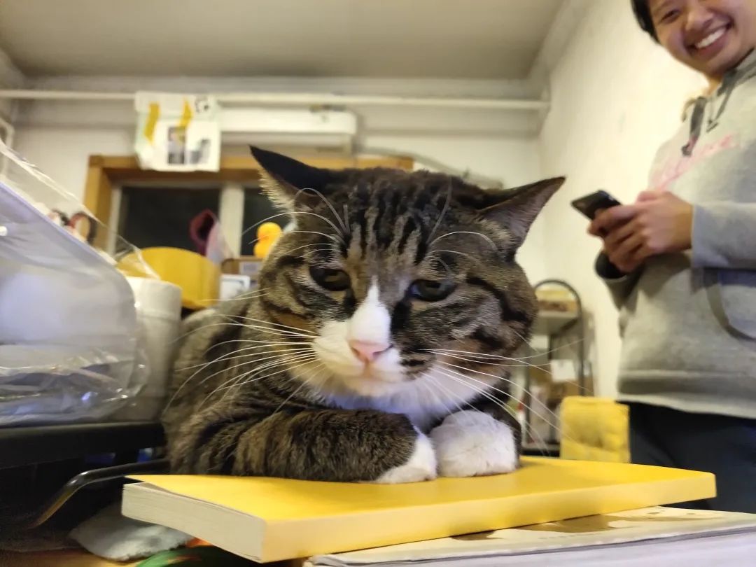 我不知道它是怎麼熬過來的,它看上去戰戰兢兢,十分飢餓。我想辦法捉住了它,並帶回辦公室,它就是今天我們的小胖。