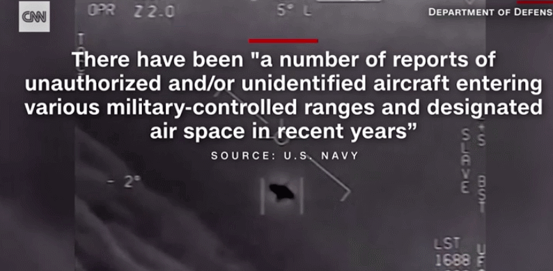 2020年4月,美國五角大樓正式公佈了三段UFO視頻。這些視頻由紅外攝像機拍攝,疑似記錄了不明飛行物的快速移動。一些視頻中還能聽到美軍士兵驚歎這一物體移速飛快,推測它可能是無人機。