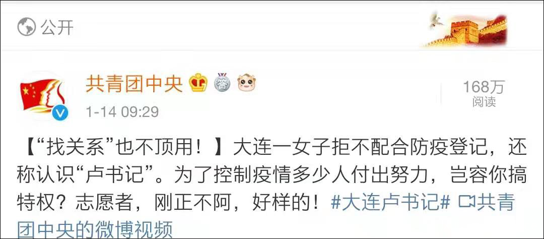 【綜合:@沸點視頻 @共青團中央 @紫光閣 @半月談 @大連發布 網友評論】