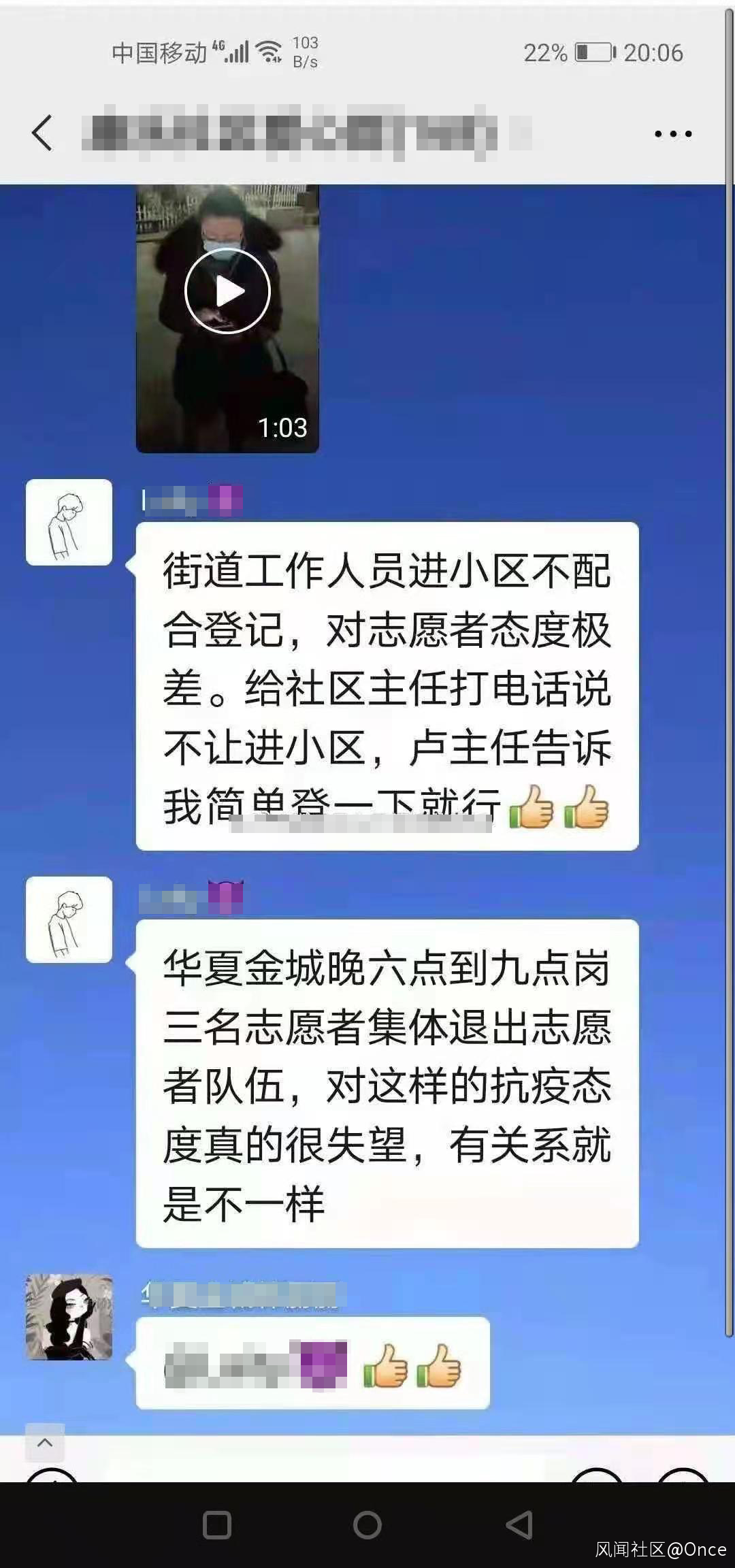 現場的三名志願者之後在社區微信羣宣佈集體退出志願者隊伍,稱:“對這樣的抗議態度真的很失望。”
