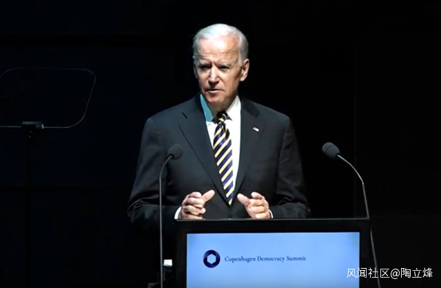 (拜登2018年在哥本哈根民主峯會上發表演講“民主關乎自由” ,視頻截圖)